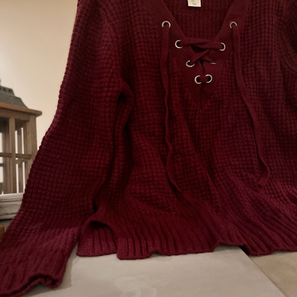 Burgundy/Maroon sz Small but fits like S/M. Very comfy, no itchiness whatsoever!