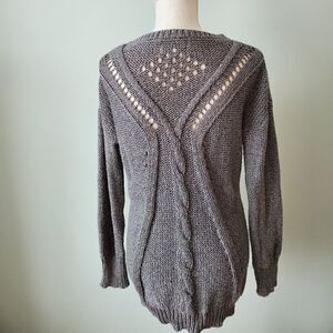 Ruby Moon Women's Cable Front Open Crochet Back Long Sleeve Sweater Size Medium