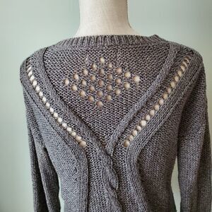 Ruby Moon women's sweater. Size Medium. Cable front and open crochet design in back. Great condition. No tears or stains.