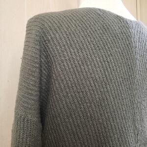 really cute and comfy, this cozy tight knit sweater is a sage green color, long sleeves and v neck.