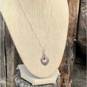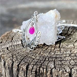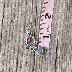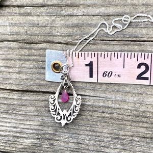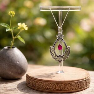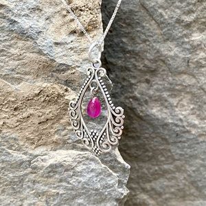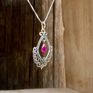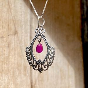 Genuine ruby set in a filigree design of solid 925 sterling silver pendant necklace