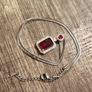 Ruby Pendant Necklace Silver Stainless Steel Emerald Cut Stone for Women