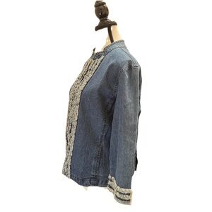 Ruby RD Denim Jacket Fray Ruffle Hook Eye Closure Western Boho 3/4 Sleeves SZ 14