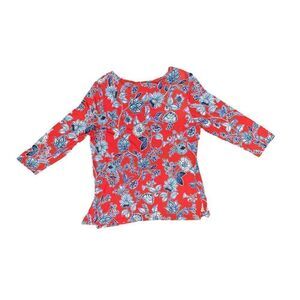 Ruby Rd 3/4 Sleeve Tee Shirt Top Red Floral Print Petite Medium