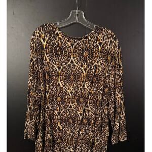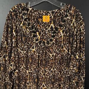 Ruby Rd. 3X Beaded Neckline Abstract Print Top Brown Black White