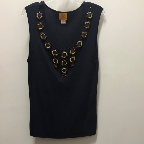Ruby Rd. Navy sleeveless top. Woman’s size 2X round neck with beaded details