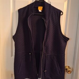 This is Ruby Rd. quilted full-zip vest in Black with a drawstring waist. Size Medium