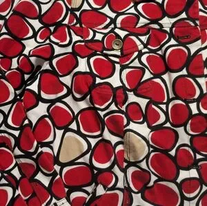 • red, tan, black and white abstract circle pattern