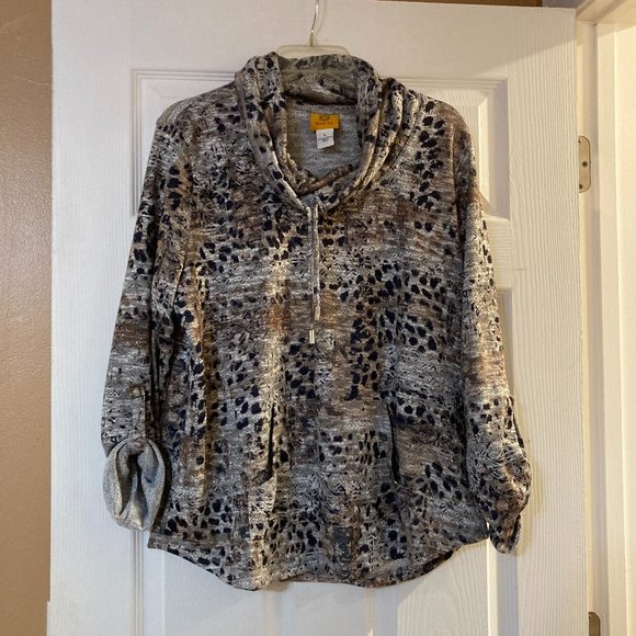 Ruby Rd Animal Print Cowl Neck Sweatshirt Tunic Size L