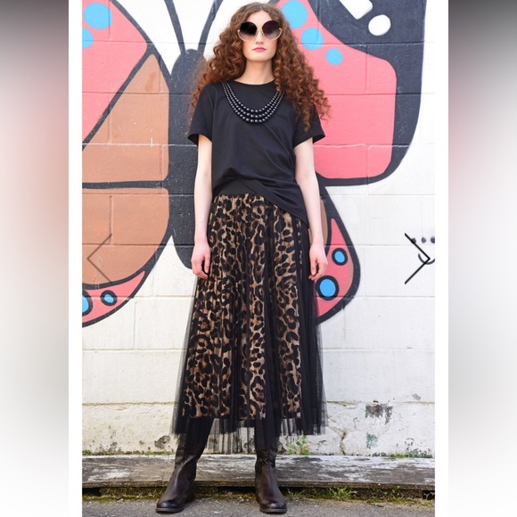 The model picture has the same skirt with a sheer longer black skirt over the leopard skirt.