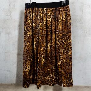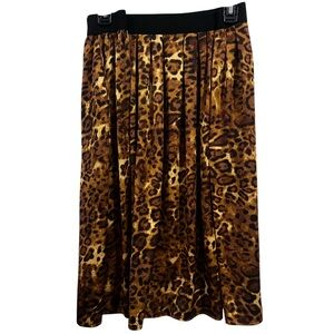 leopard print midi skirt from the brand Ruby Rd. Wide elastic waistband & Pleats