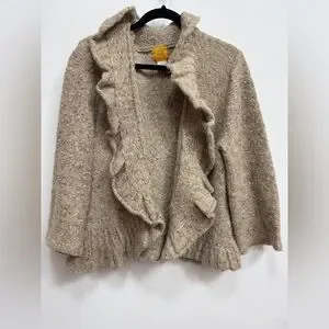 Ruby Rd. Beige Ruffle Cardigan GUC