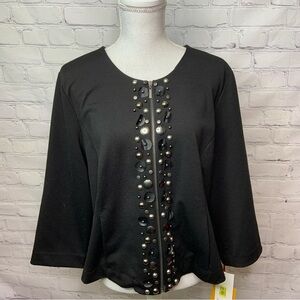 Ruby Rd. Black Embellished Zip Front Blazer 18 NWT