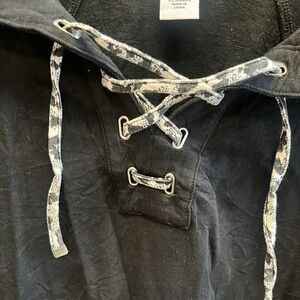 Chic black jacket with lace-up detail. Ideal for casual outings.