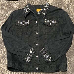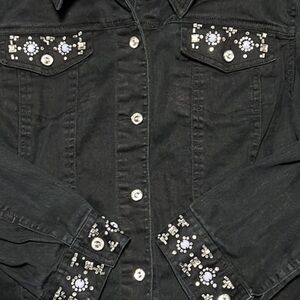 Ruby Rd Black Rhinestone Embellished Jean Jacket