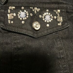 * Ruby Rd Black Rhinestone Embellished Jean Jacket Features: