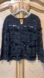Pretty cardigan to dress up in or paired with jeans. Mix of faceted style beads with small and large flip style sequins, metallic black threading & fur/ fuzzy like trim.