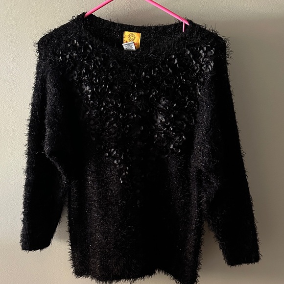 Elegant black sweater with textured design. Soft and stylish. Perfect for any occasion.
