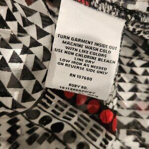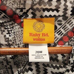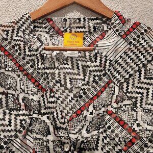 Ruby Rd Black White Sheer Geometric Print Button Up Blouse Size 20W Pockets