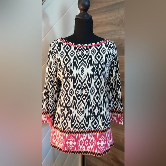 Ruby Rd. Black and Pink Patterned Top