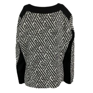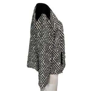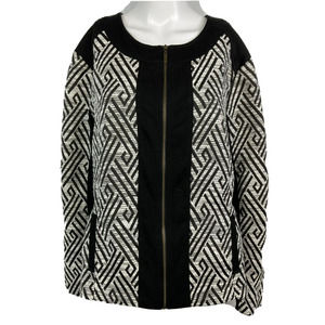Ruby Rd Blazer Jacket Womens Sz 16 White Black Geometric Knit Full Zip Pockets