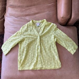 Ruby Rd. Blend Eyelet V-Neck Button Up Blouse Top Yellow 3/4 Sleeve Size 14
