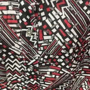 Queen of hearts inspired Long sleeves or 3/4 with a button Peek a boo sheer cutout pieces 67% rayon 28% polyester 5% linen Armpit to armpit 21 1/2 inches approximately EUC = Condition Closet #2B