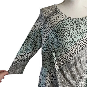 Ruby Rd Blouse Petites Medium Rhinestone Bling Neckline Ruched Side Leopard Cheetah Top