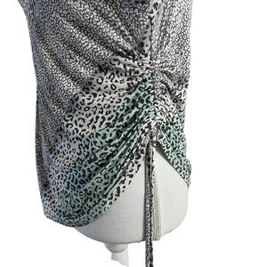 Ruby Rd Blouse Petites Medium Rhinestone Bling Neckline Ruched Side Leopard Top