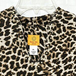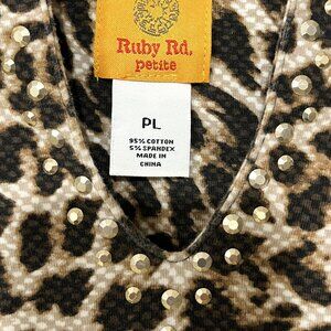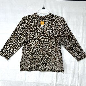 Ruby Rd. Blouse, ¾ Sleeve, Animal Leopard Print, Brown + Cream, Size PL