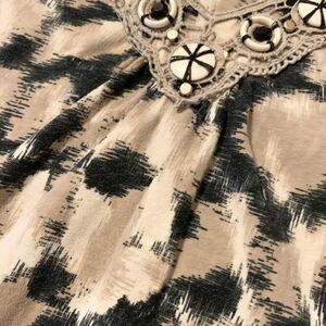 Ruby Rd Blouse Small Women Beige Black Artsy Embellished V-Neck BohoChic Summer