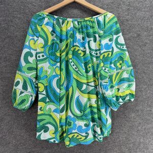 Ruby Rd. Blouse Women XL Green Paisley 3/4 Sleeve Round Neck Pullover Casual