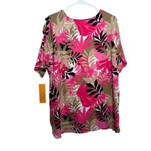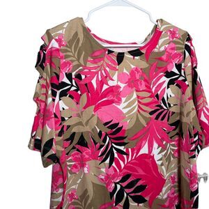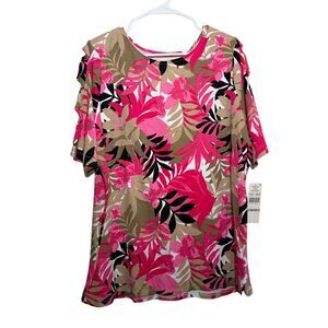 Ruby Rd Blouse Women's 1X Short Sleeve Printed Strappy Sleeve Shirt Top NWT