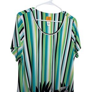 Ruby Rd Blouse Women's 1X Striped Round Neck Short Sleeve Floral Top Shirt