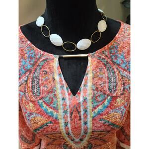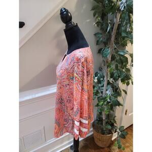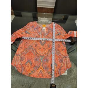 Ruby Rd Blouse Women's Large Multicolor Paisley Print Long Sleeve Tunic Top