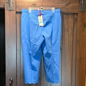 Stylish blue capris with scalloped hem. Perfect for casual outings.