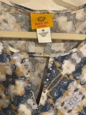 Ruby Rd. Blue & Cream Patterned Tunic Top