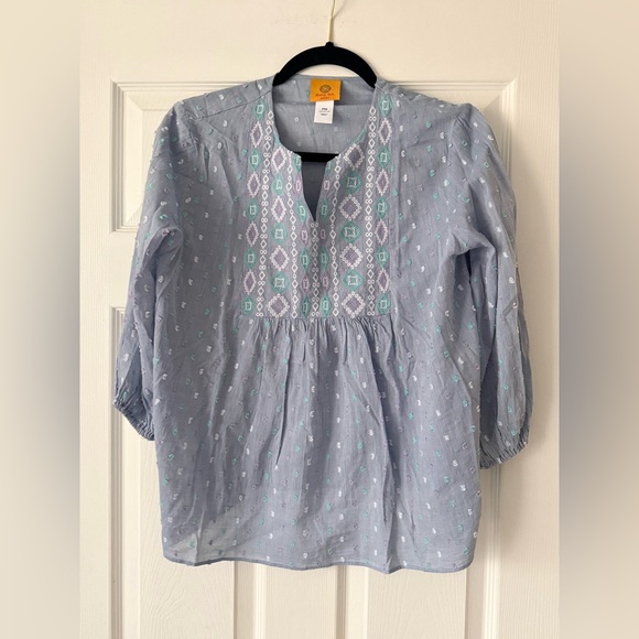 Charming blue blouse with delicate embroidery. Ideal for casual wear.100% cotton