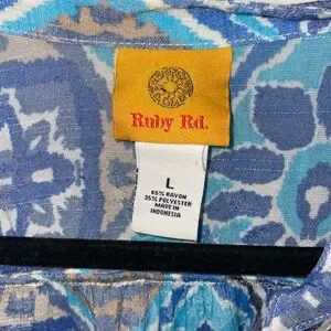 Ruby Rd. Blue & Gray Geometric Button-Down Blouse