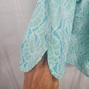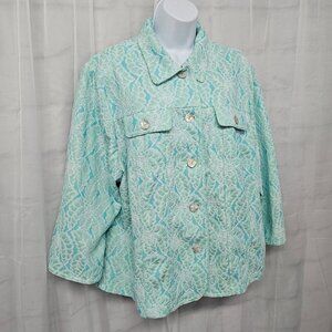 Ruby Rd. Blue Green Lace Floral Leaf Print Boho Jacket 24W