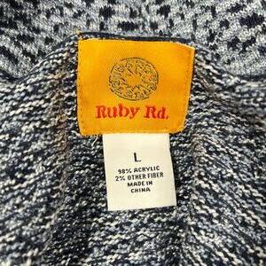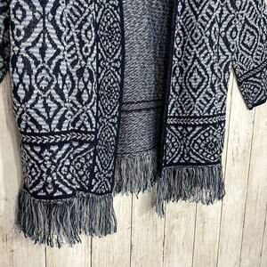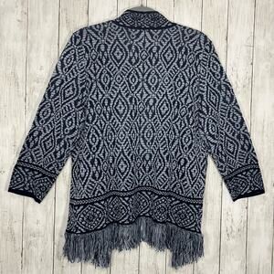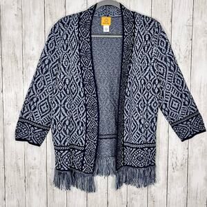 Ruby Rd Blue Long Sleeve Tribal Open Front Fringe Bottom Boho Cardigan Large