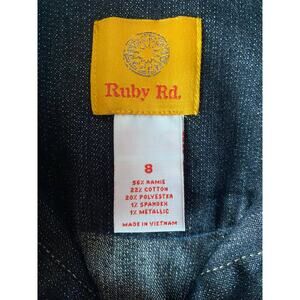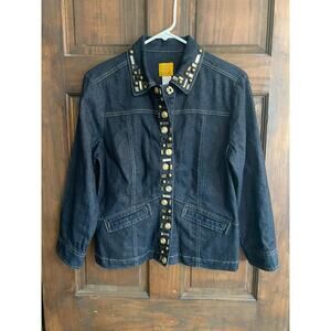 Ruby Rd. Blue Metallic Denim Jean Jacket Size 8 Embellished