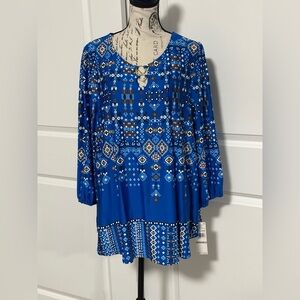Ruby Rd. Blue Patterned Blouse