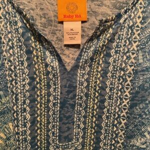Ruby Rd. Blue Tie-Front Blouse