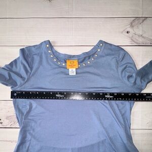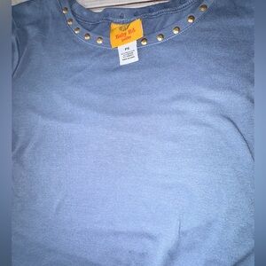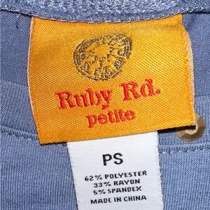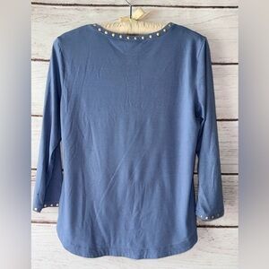 Ruby Rd. Blue Top with Gold Stud Accents Size PS Summer Vacation Workwear Office