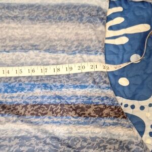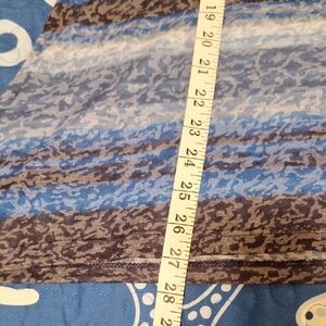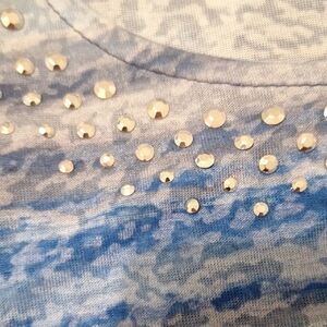 Stylish tunic with a blue and gray pattern. Features a studded neckline. Perfect for any occasion. like New, comes from a smoke free pet free, loving home