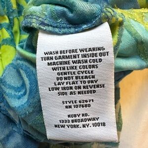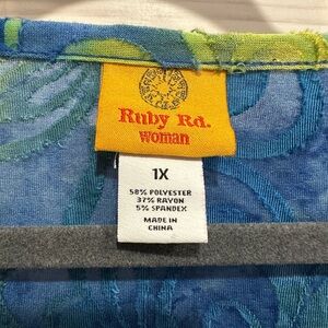Ruby Rd. Blue and Green Asymmetrical Ruched Blouse
