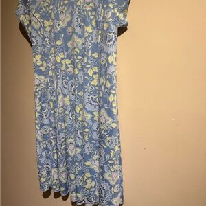 Ruby Rd Women's Knee Length Short Sleeve Blue Floral Dress. Size PL