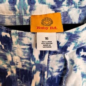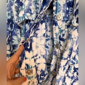 Ruby Rd. Blue and White Patterned Snap Jacket Blouse