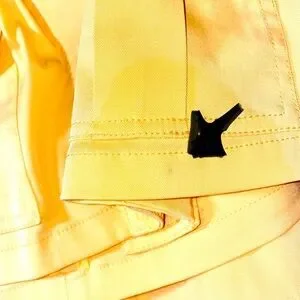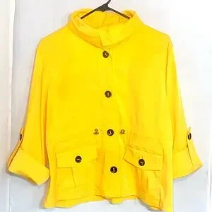 This lovely, vibrant, yellow jacket has two barely noticeable stains, possibly ink on front see photos